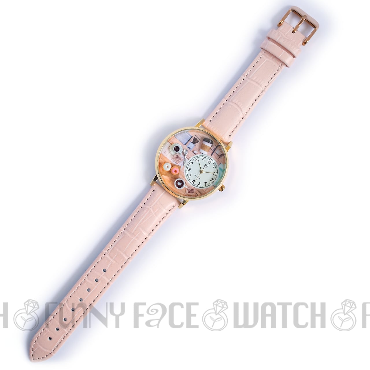 ムーブメント:日本製クォーツ / 風防:プラスチック / ベルト:イタリアンレザー / ケース:ゴールドカラーフレーム / 裏ブタ:ステンレススティール / サイズ:直径40mm、厚さ12mm