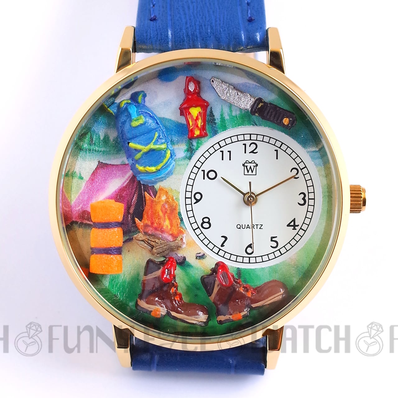 アウトドアやキャンプを愛する方にぴったりの腕時計です。文字盤にはミニチュアのリュックやトレッキングブーツ、ランタンなど、冒険心をくすぐる可愛らしいデザインが施されています。山登りや焚き火の瞬間をより特別に感じられる、機能性とデザイン性を兼ね備えた特別なアイテムです!