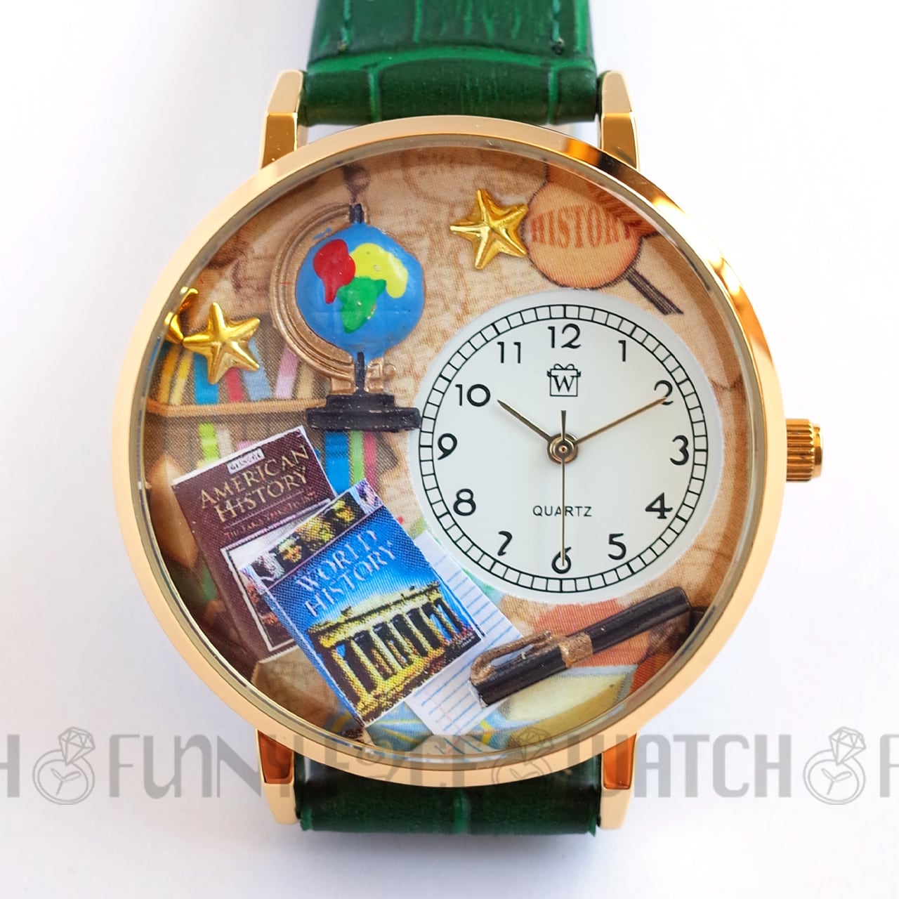 歴史好きや旅行を愛する方にぴったりの腕時計です。文字盤にはミニチュアの地球儀や書物が描かれ、様々な歴史的な瞬間や人物を連想させます。この時計を身につけることで、過去のロマンや謎、そして発見の旅に出かけたくなることでしょう。