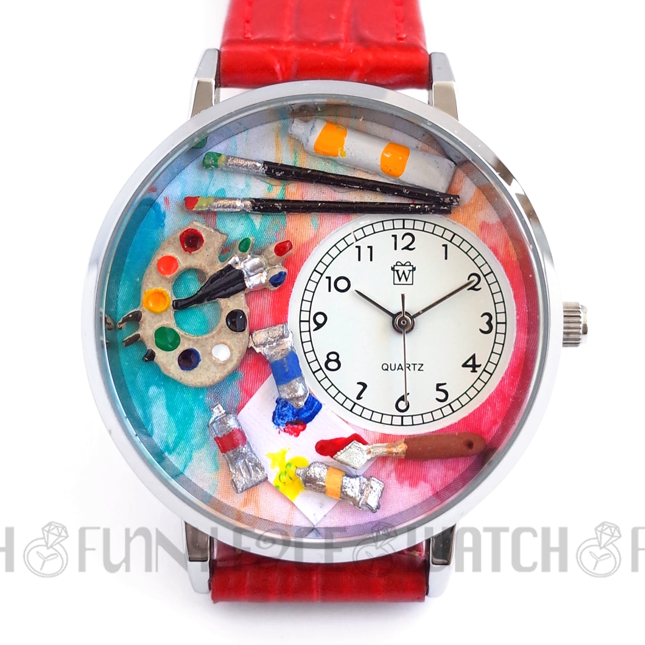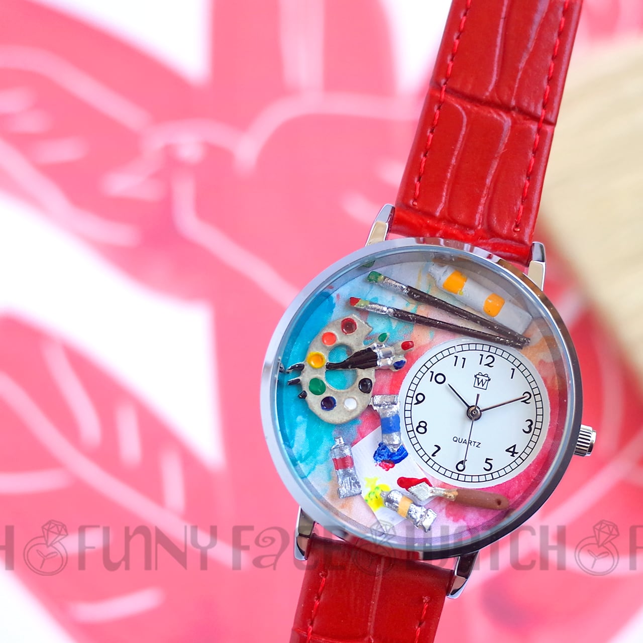 芸術を愛するすべての方にぴったりの腕時計です!文字盤にはミニチュアのパレット・筆・絵の具・キャンバスがカラフルに配置され、油絵や水彩画の創作意欲を駆り立てます。この時計を身につけることで、日常の中にアートを取り入れ、創作のインスピレーションを感じやすくなることでしょう。自分だけの芸術的な時間を楽しむ特別なアイテムです!