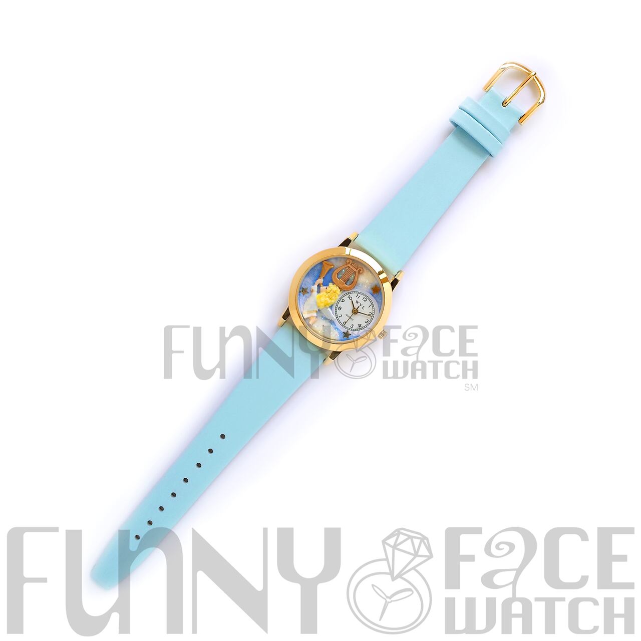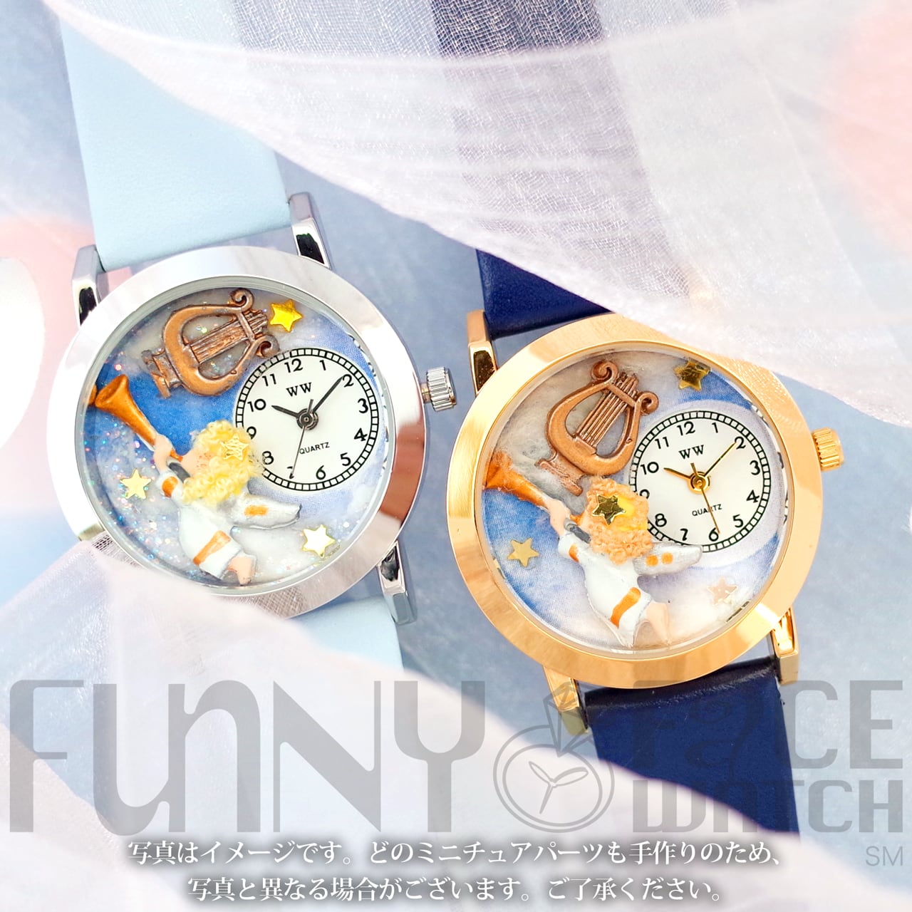 ムーブメント:日本製クォーツ / 風防:プラスチック / ベルト:イタリアンレザー / ケース:ゴールドカラーフレーム / 裏ブタ:ステンレススティール / サイズ:直径34mm、厚さ12mm